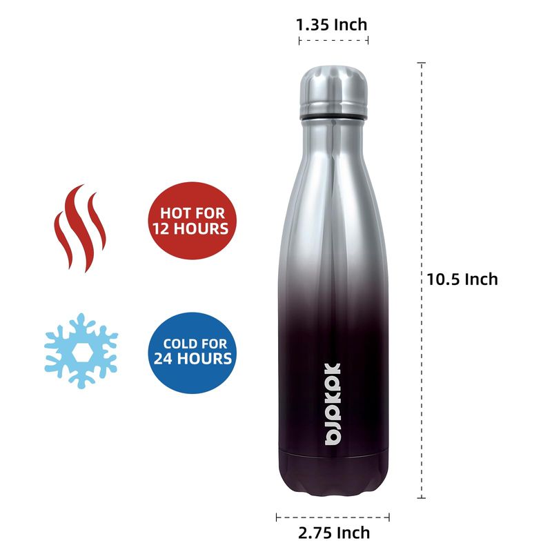 BJPKPK Botellas de agua aisladas de 17 onzas 16.9 fl oz, botellas de agua de acero inoxidable, botellas de agua deportivas que mantienen el frío durante 24 horas y el calor durante 12 horas, botellas de agua para niños sin BPA para la escuela, color negro
