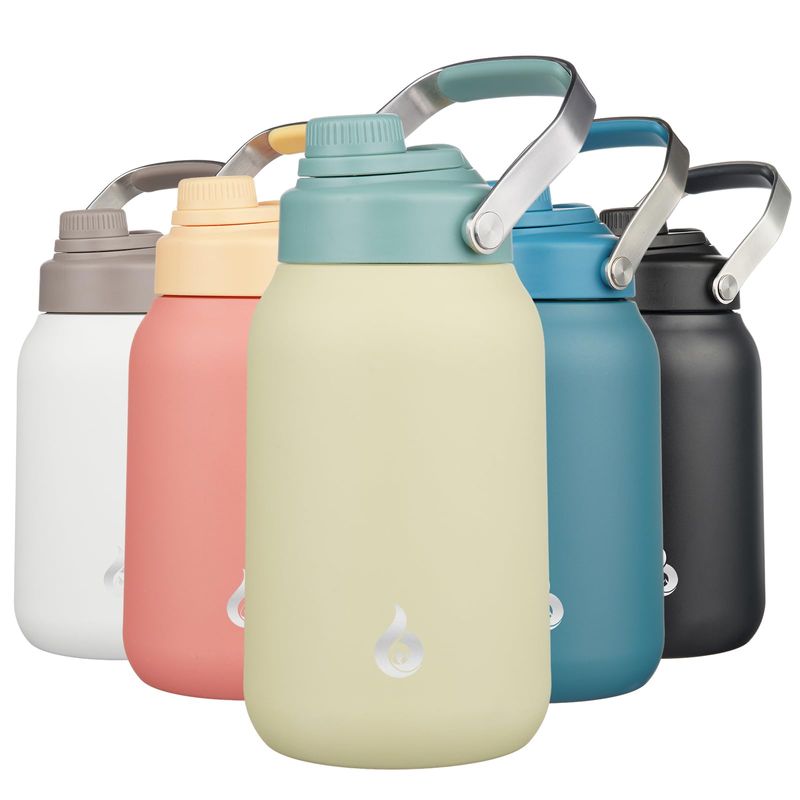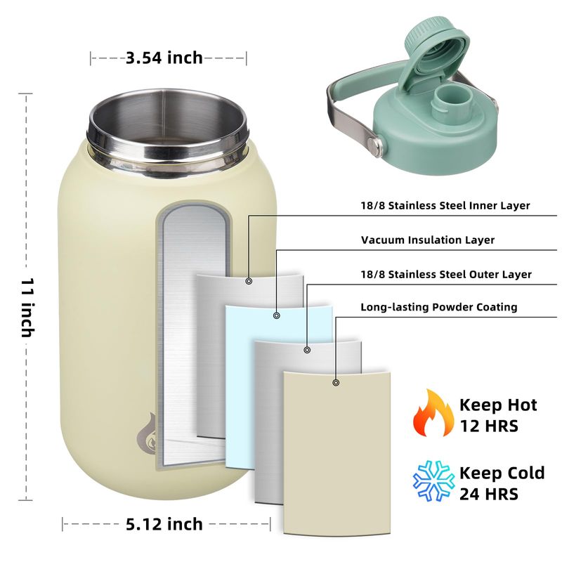 Botella de agua aislada: la botella de agua BJPKPK de medio galón utiliza tecnología de aislamiento al vacío de doble pared para mantener tu bebida fría hasta 24 horas, o caliente hasta 12 horas, asegúrate de disfrutar de tus bebidas favoritas a la temperatura más adecuada todo el día.