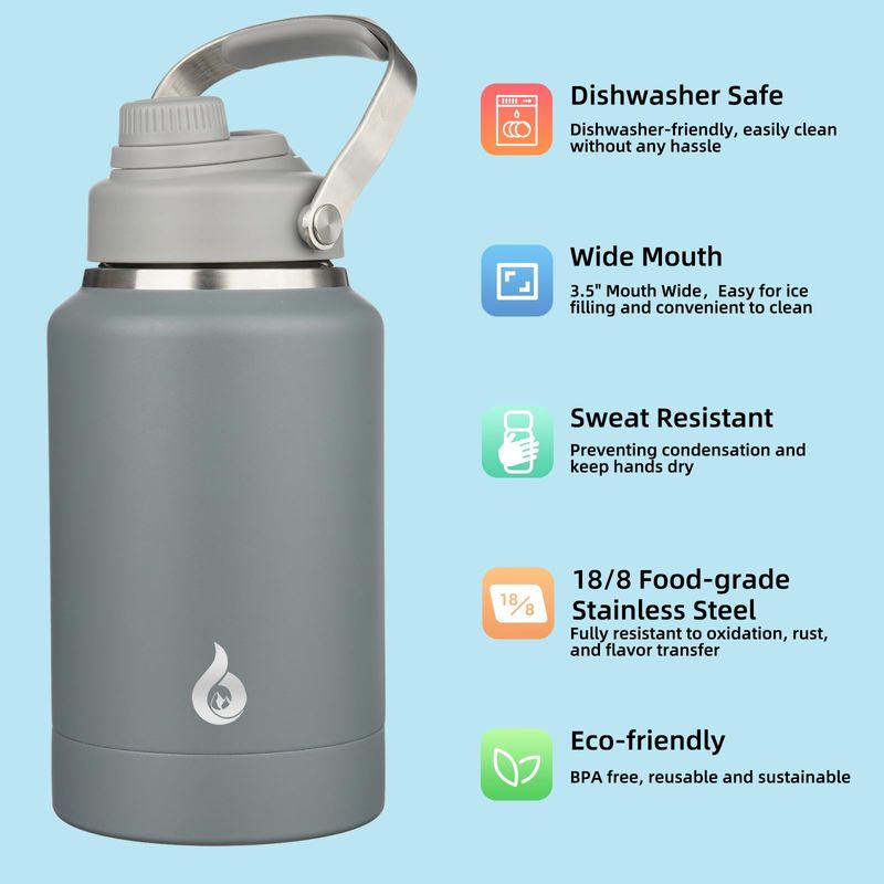 Sin BPA y regalo ideal: estas botellas de agua aisladas de 64 onzas son 100 libres de BPA y plomo. Perfecto para viajar, senderismo, ciclismo, camping, pesca, gimnasio y mucho más. Con una variedad de colores de moda, es un gran regalo para tus seres queridos para ayudarlos a mantenerse hidratados y saludables.
