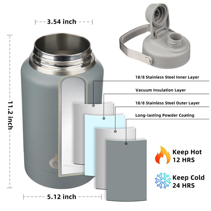 Botella de agua aislada: la botella de agua BJPKPK de medio galón utiliza tecnología de aislamiento al vacío de doble pared para mantener tu bebida fría hasta 24 horas, o caliente hasta 12 horas, asegúrate de disfrutar de tus bebidas favoritas a la temperatura más adecuada todo el día.