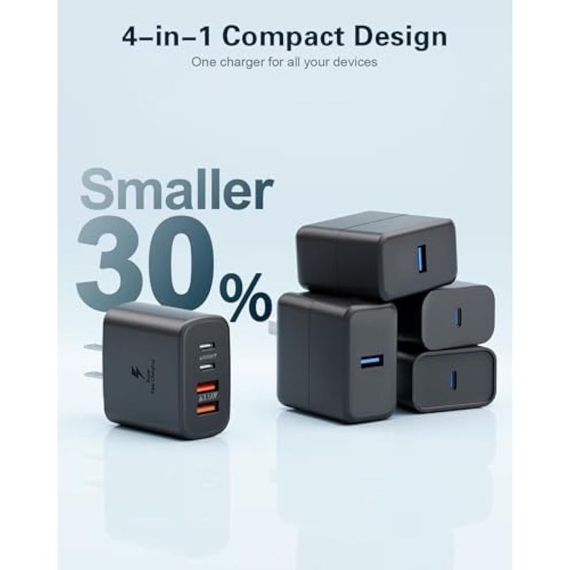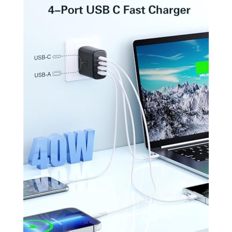????Cargador multipuerto 4 en 1: enchufe de cargador rápido BECHAGE con 4 puertos dos puertos USB C + dos puertos USB A puede cargar rápidamente 4 dispositivos simultáneamente a hasta 40 W. La elección del cargador multipuerto de 40 W Aimoze minimiza el tiempo de espera y te libera de los cargadores desordenados con varias interfaces.