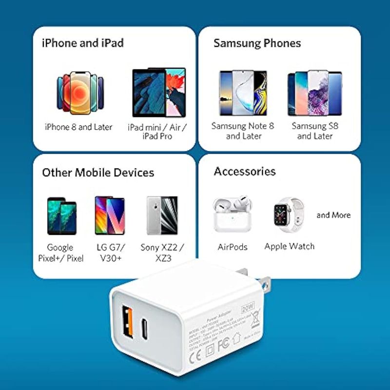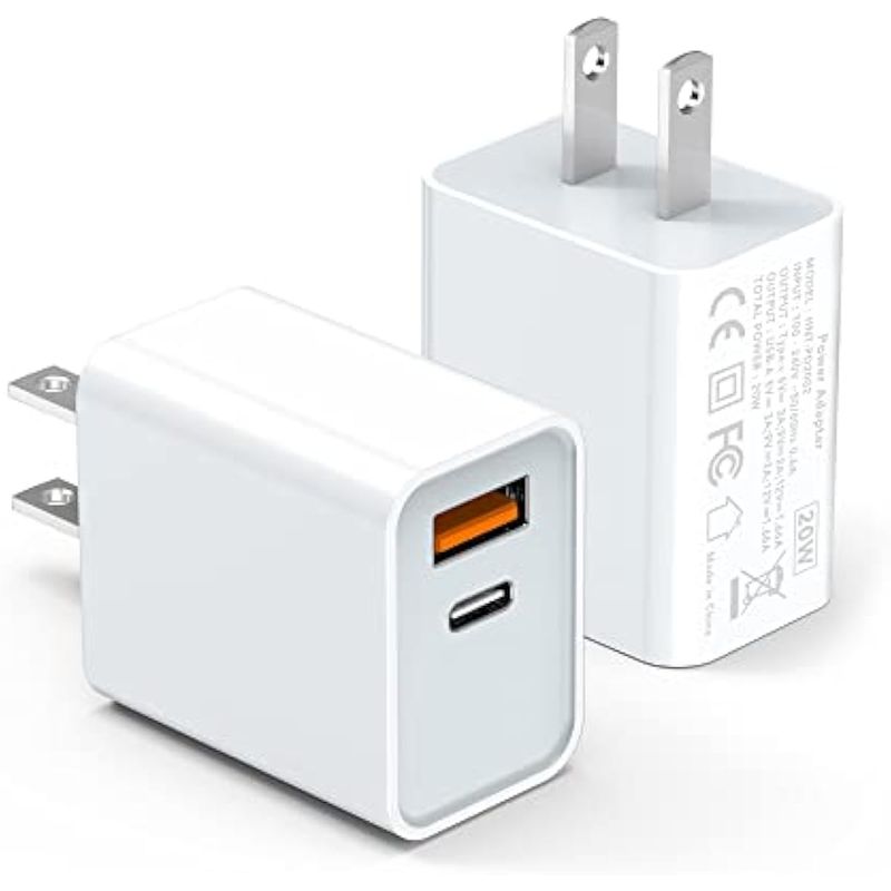 TELEFONIAACCESORIOSCARGADORESBloque de cargador de pared USB C de 20 W, paquete de 2 unidades de suministro de energía PD de
