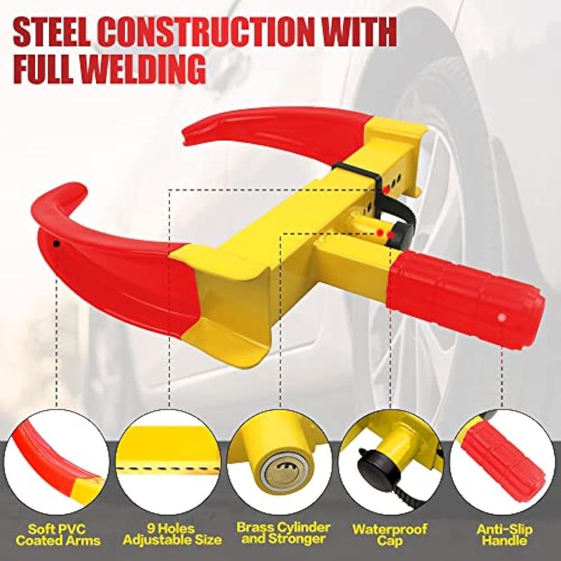 RODADOSNEUMÁTICOSBloqueo de abrazadera de rueda ajustable de seguridad para remolque, antirrobo, ajuste máximo de