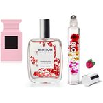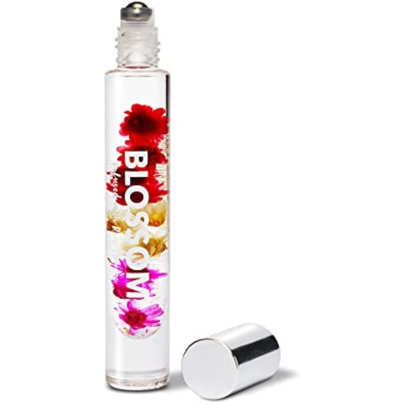 BLOSSOM ACEITE DE PERFUME ROLL-ON ROLLERBALL CON INGREDIENTES NATURALES, ACEITES ESENCIALES Y PERFUME EN AEROSOL A BASE DE PLANTAS EAU DE PARFUM, INFUNDIDO CON FLORES REALES, PAQUETE DE 2 UNIDADES,