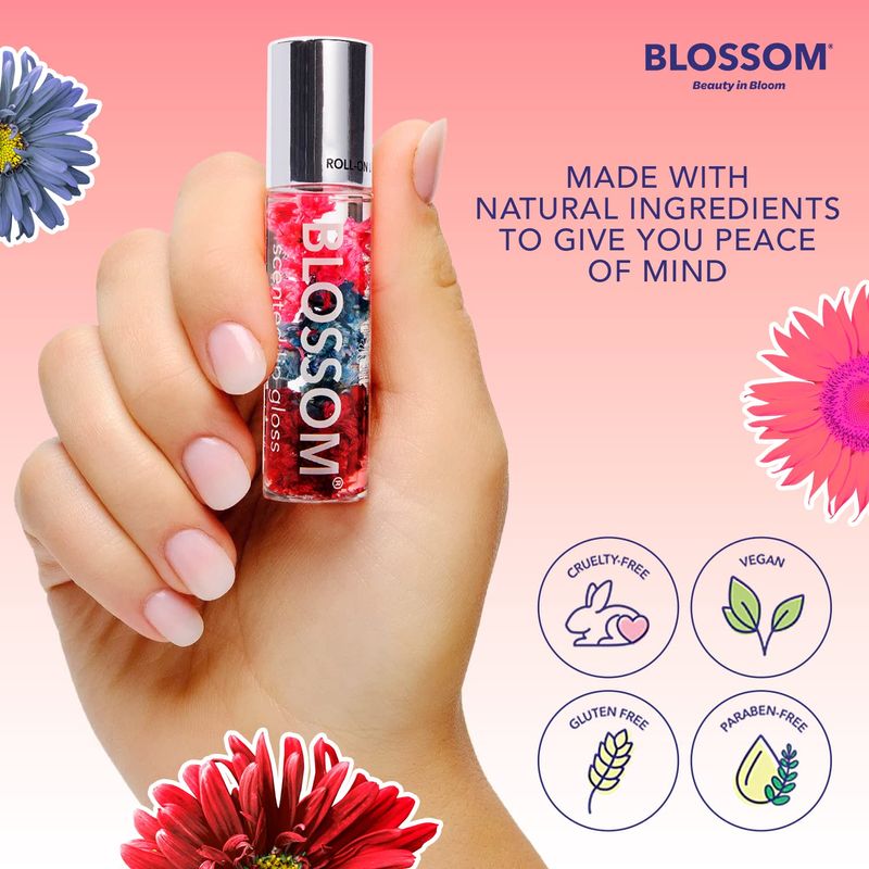 Blossom Roll on Lip Gloss, aceite de labios hidratante transparente perfumado de alto brillo, no