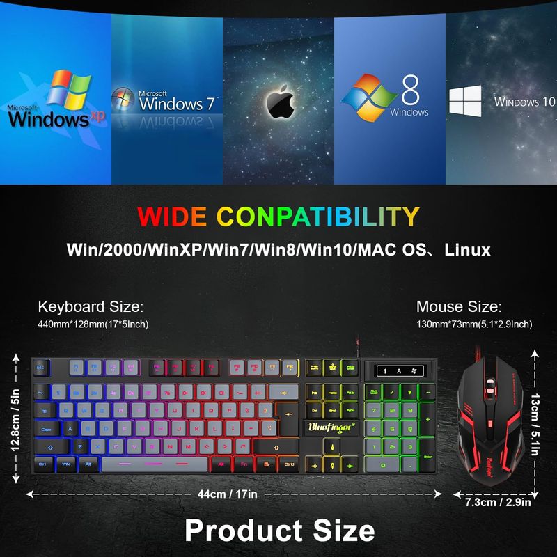 BlueFinger Combo de teclado RGB y mouse retroiluminado, cable USB, juego de juegos LED para