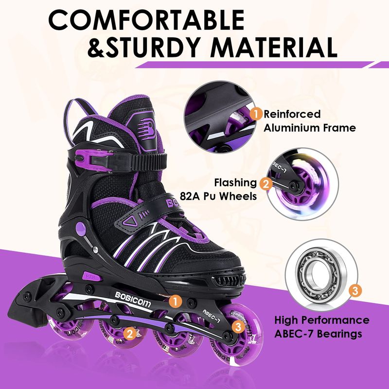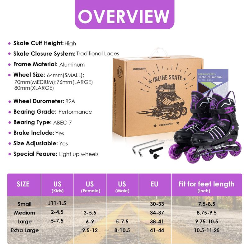 BOBICOM Patines en línea ajustables con ruedas de luz completa, patines iluminadores para exteriores