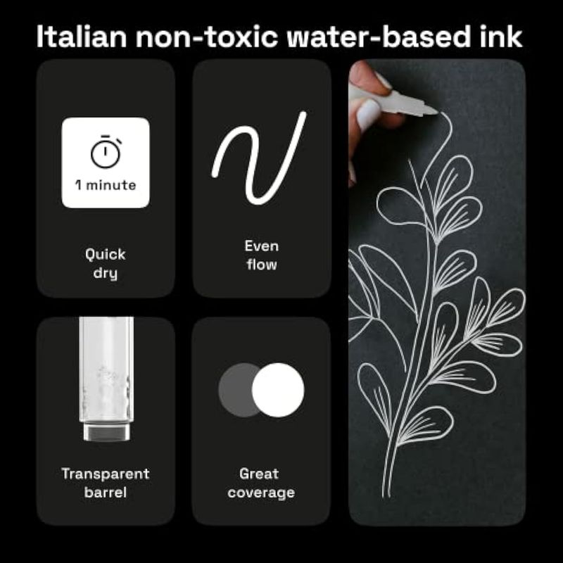 No tóxico: nuestros bolígrafos de pintura blanca cumplen con las normas de seguridad ASTM D-4236. Los niños y adultos pueden disfrutar dibujando con este bolígrafo de arte blanco. Estos marcadores mágicos blancos están listos para cualquier proyecto, sin importar el evento Crea arte para Navidad, cumpleaños o decoración de boda.