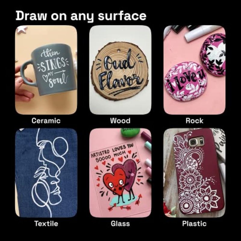 Calidad prémium: los marcadores de pintura blanca Artistro utilizan tinta acrílica vívida que se seca rápidamente para producir un acabado opaco y brillante muy duradero en casi todas las superficies. Estos bolígrafos de tinta blanca están equipados con tinta italiana y una punta japonesa para proporcionar la máxima calidad a cualquier profesional o principiante.