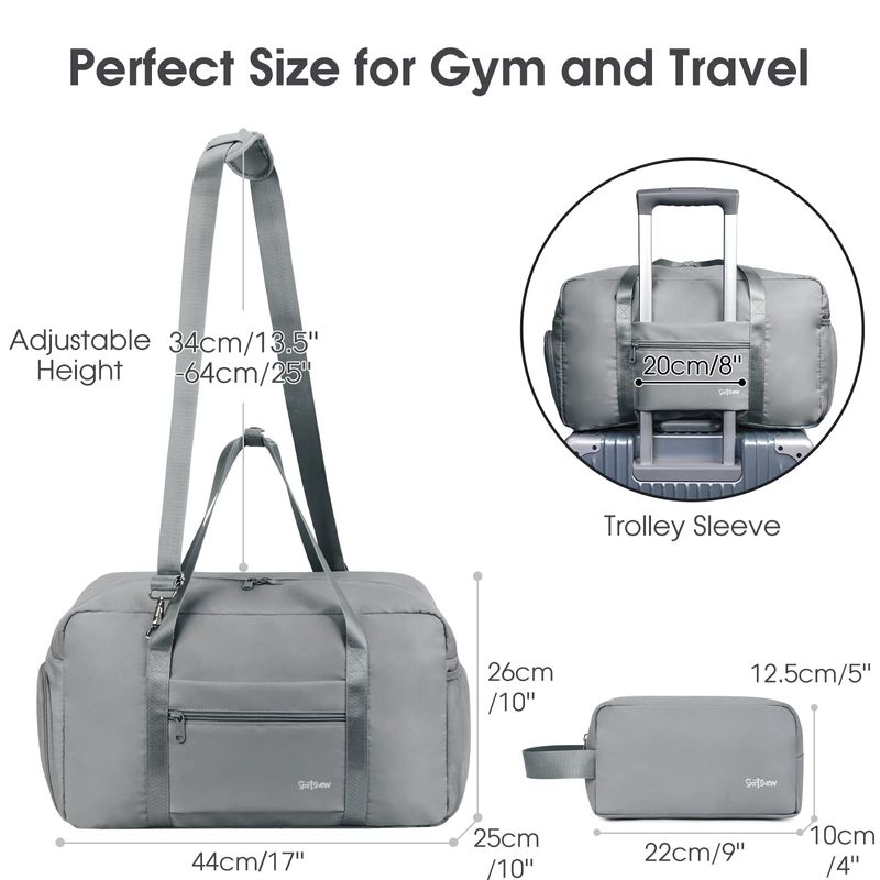 Dimensiones totales y correa de hombro extraíble: 18.5 pulgadas de largo x 12 pulgadas de alto x 8 pulgadas de ancho. Peso: 1.4 libras. La bolsa de viaje está hecha de tela de nailon altamente resistente al agua y a los desgarros. Es duradero y fácil de limpiar. La correa de hombro acolchada es ideal para un uso a largo plazo, y te permite ajustar libremente la longitud