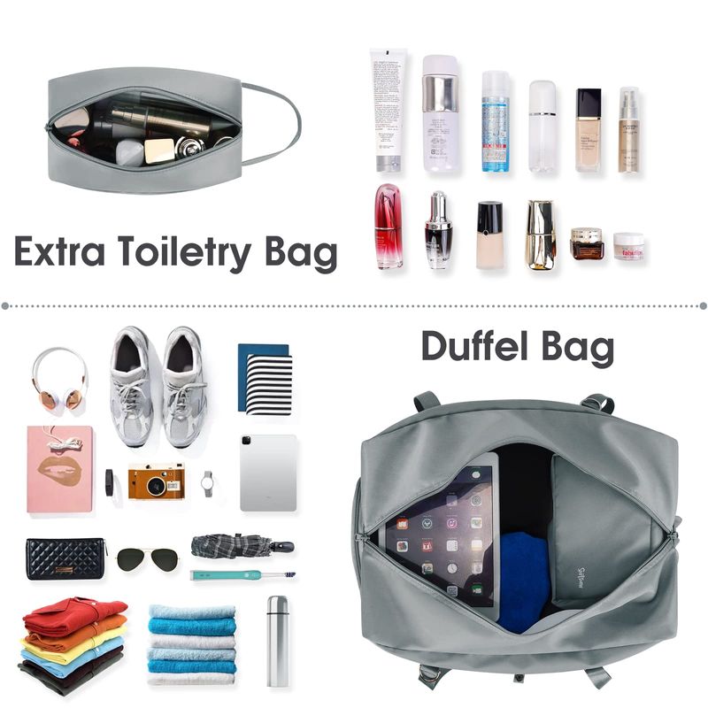 Bolsa de zapatos transpirable y bolsillo húmedo: 1 compartimento para zapatos especialmente diseñado con dos rejillas de ventilación para formar un ambiente ventilado, dando a tus zapatos espacio para respirar y el olor para disiparse. Además, 1 bolsillo exterior con forro de PVC con cremallera para tu aseo o equipo húmedo, perfecto para separar tu ropa húmeda y seca, limpia y ropa mientras viajas. 2 bolsillos laterales expandibles son del tamaño perfecto para botellas de agua 27.1 fl oz, paraguas o cualquier otra cosa que quieras agarrar fácilmente sin abrir la bolsa