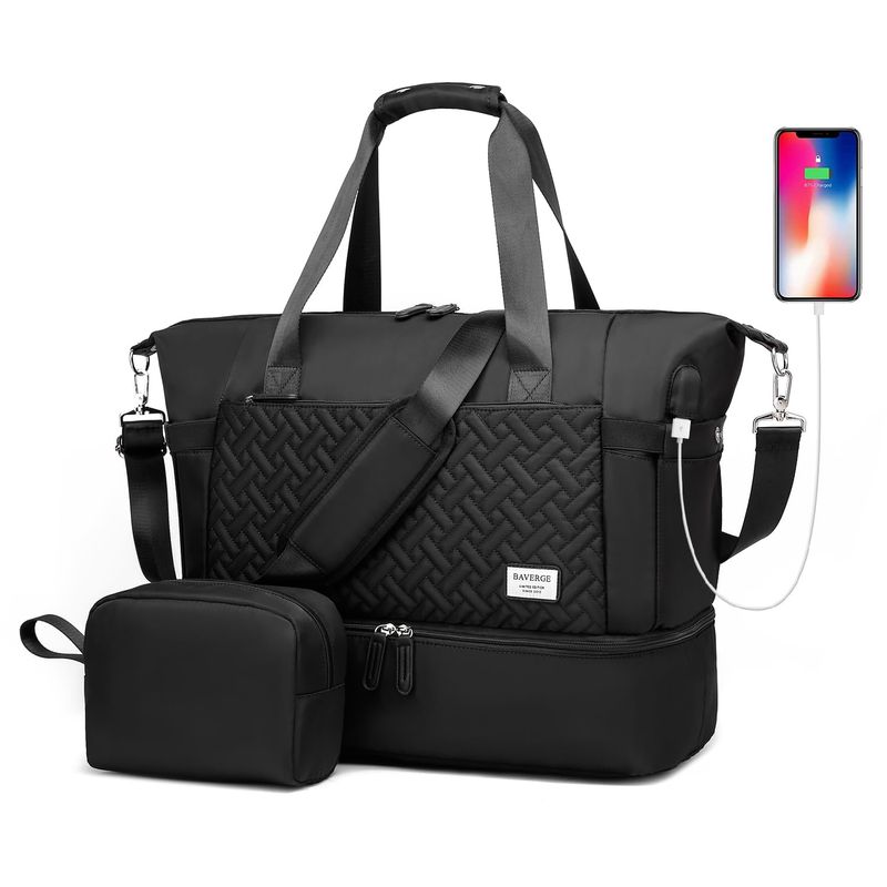 Bolsa de viaje con compartimento para zapatos: hemos añadido un compartimento separado para zapatos y una bolsa para zapatos tamaño: 17 x 12 pulgadas. Las bolsas de viaje para mujer tienen un compartimento para zapatos para guardar tus zapatos o ropa sucia, por lo que es fácil separarlos de tu ropa limpia cuando viajas. También viene con una bolsa de aseo en la que puedes poner tus cosméticos, productos para el cuidado de la piel o artículos de tocador.