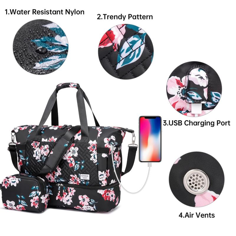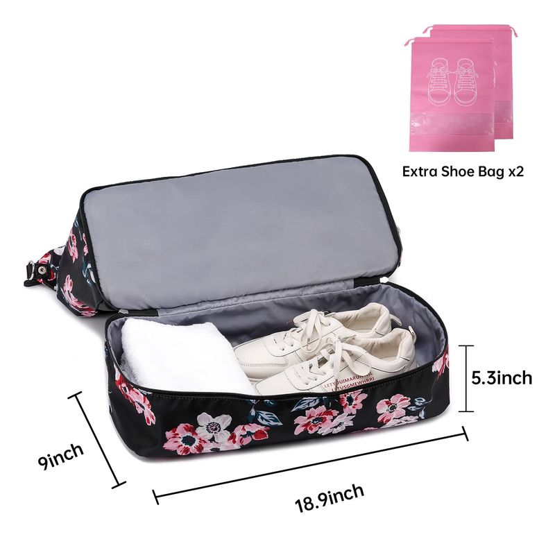 Bolsa de viaje con compartimento para zapatos: hemos añadido un compartimento separado para zapatos y una bolsa para zapatos tamaño: 17 x 12 pulgadas. Las bolsas de viaje para mujer tienen un compartimento para zapatos para guardar tus zapatos o ropa sucia, por lo que es fácil separarlos de tu ropa limpia cuando viajas. También viene con una bolsa de aseo en la que puedes poner tus cosméticos, productos para el cuidado de la piel o artículos de tocador.