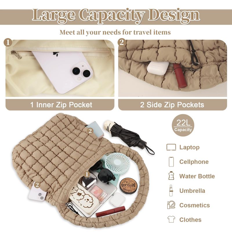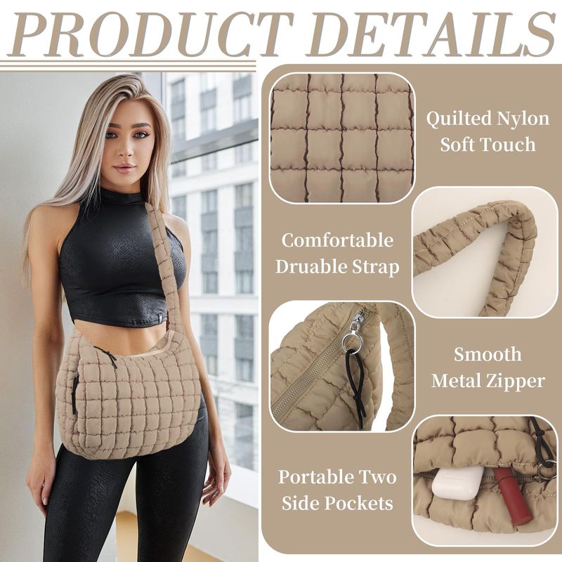 HOGARINDUMENTARIA Y ACCESORIOSBolsa de mano acolchada para mujer, bolsa cruzada acolchada grande, ligera, de nailon, acolchada,