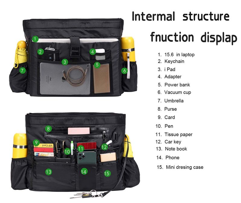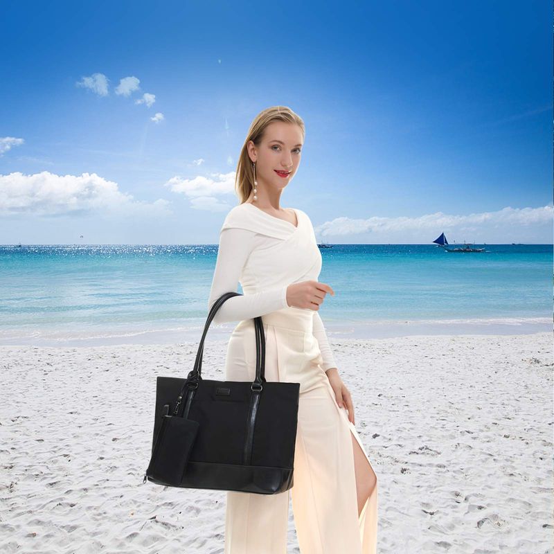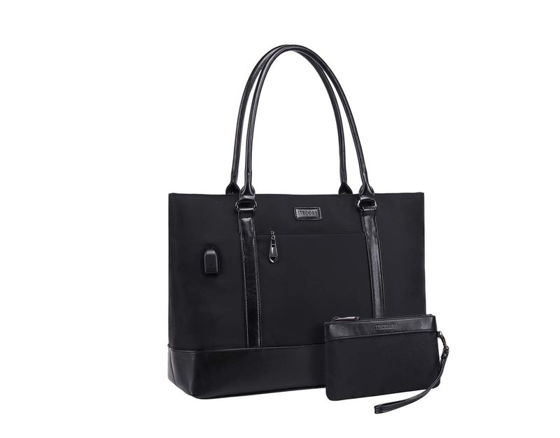 Bolsa de mano USB de 15.6 pulgadas: impermeable con 15 bolsillos, bolsa de trabajo grande para