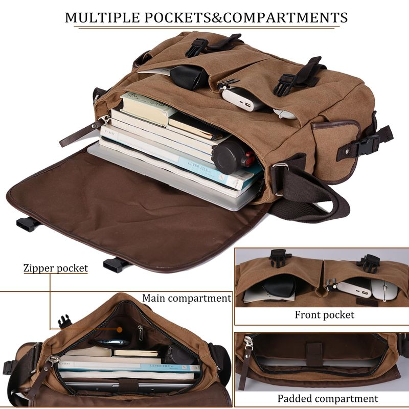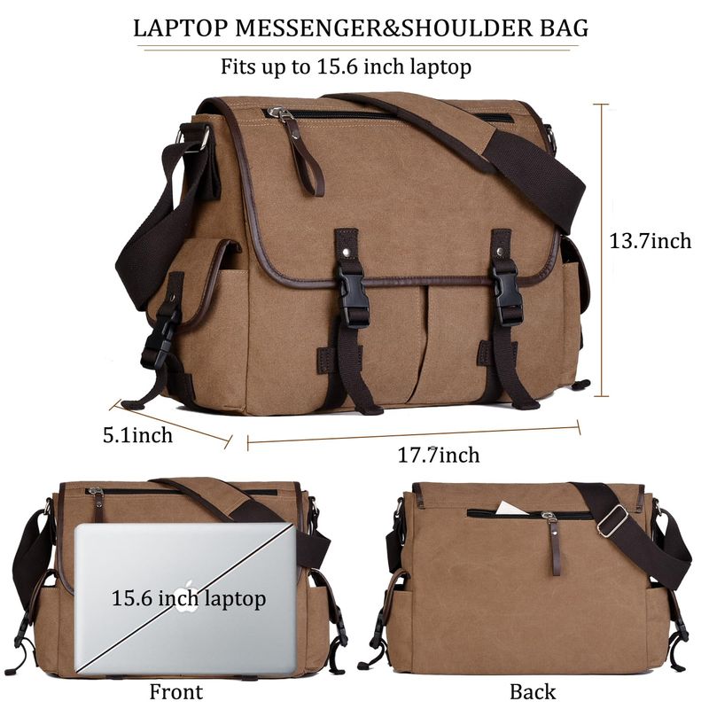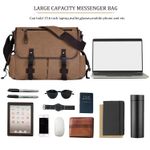Bolsa de mensajero vintage de lona para laptop de 15.6 pulgadas para hombres y mujeres, bolsa de