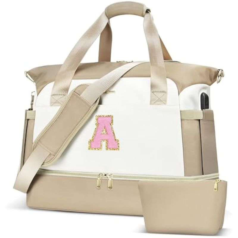 BOLSA DE VIAJE CON INICIALES PARA MUJER, BOLSA DE GIMNASIO PERSONALIZADA CON COMPARTIMENTO PARA ZAPATOS, BOLSA DE VIAJE CON PUERTO DE CARGA USB, BOLSA DE FIN DE SEMANA PARA MUJER, VIAJES, GIMNASIO,