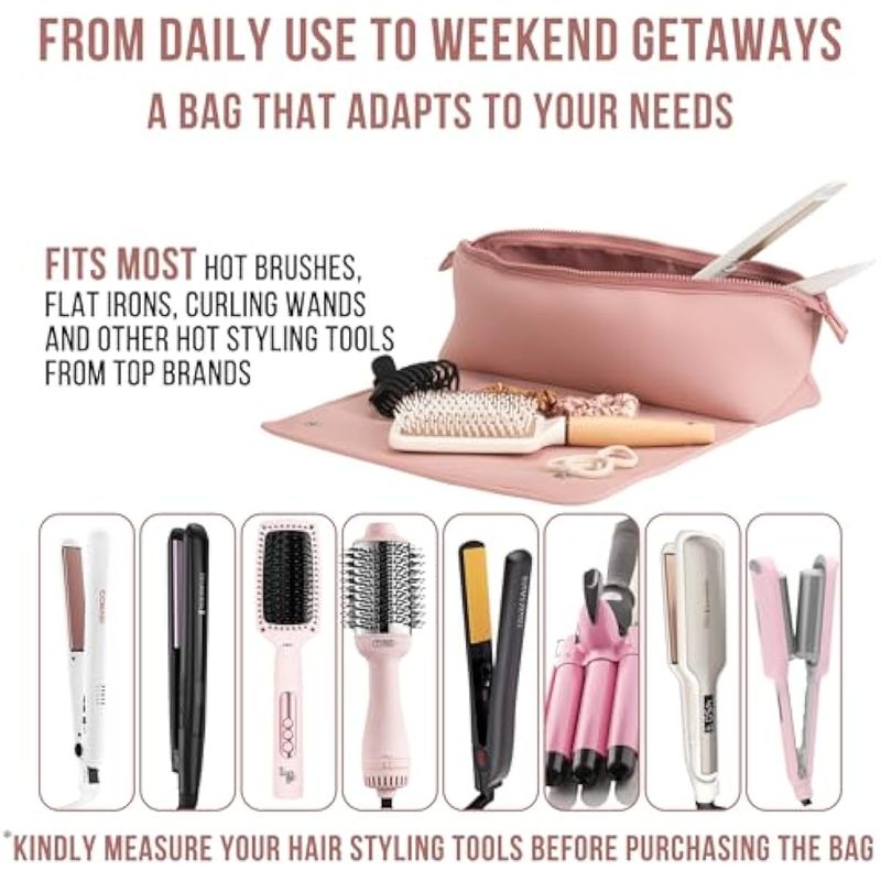 BOLSA DE VIAJE PARA HERRAMIENTAS PARA EL CABELLO Y ALFOMBRILLA RESISTENTE AL CALOR PARA PLANCHAS, ALISADORAS, RIZADORES Y ACCESORIOS PARA EL CUIDADO DEL CABELLO, DISEñO 2 EN 1, CON