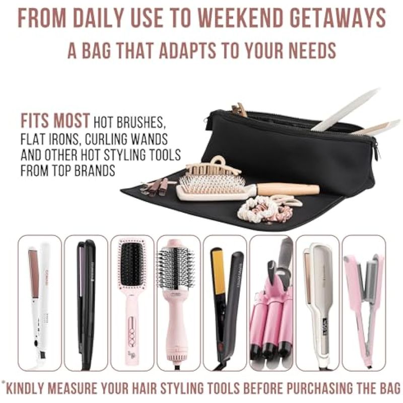 BELLEZA Y SALUDCUIDADO PERSONALPLANCHITASBolsa de viaje para herramientas para el cabello y alfombrilla resistente al calor para planchas,
