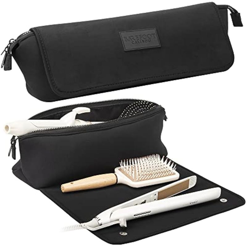 Almacena y protege las herramientas para el cabello con una bolsa de viaje multiusos diseñada para accesorios modernos de peinado. Pasan pocos días donde no estás usando una plancha plana, rizador u otras herramientas de peinado. Y si eres como la mayoría de la gente, los colocas en el mostrador, lo que puede provocar daños en las superficies, o meterlos en una bolsa de viaje cuando estás en movimiento, lo que puede dañar los dispositivos mismos. Es por eso que hemos creado una solución más inteligente y simple para el hogar, los viajes y el uso en movimiento. La bolsa de viaje Barefoot Caribou Hair Tools ofrece verdadera versatilidad para las personas que aman usar herramientas de peinado calientes y necesitan una mejor manera de mantenerlas protegidas antes, durante y después del uso diario. Detalles del producto: Bolsa de almacenamiento de herramientas para el cabello 2 en 1 acolchado resistente al calor Neopreno resistente compacto, uso portátil de viaje gran capacidad de transporte Dimensiones: 14 "x 4" Tamaño de almohadilla interior: 10 "x 13"