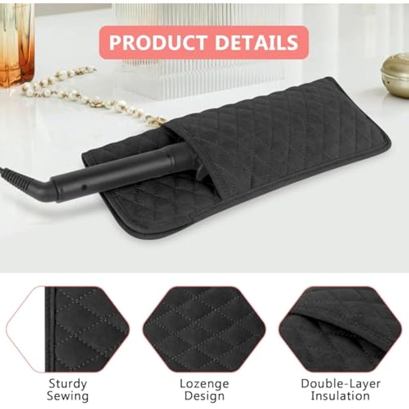 PROTECCIÓN DE SEGURIDAD: Puedes poner las herramientas calientes directamente en esta bolsa de plancha plana después de su uso, ya no tienes que preocuparte por que las herramientas de peinado caliente dañen tus encimeras o muebles y proteger a tu familia y niños de quemaduras