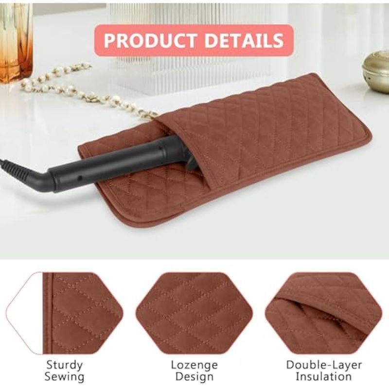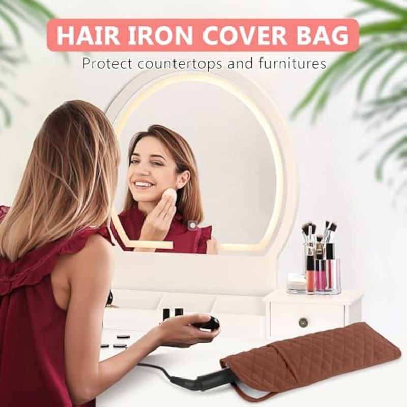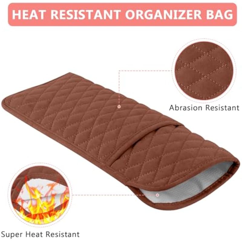 PROTECCIÓN DE SEGURIDAD: Puedes poner las herramientas calientes directamente en esta bolsa de plancha plana después de su uso, ya no tienes que preocuparte por que las herramientas de peinado caliente dañen tus encimeras o muebles y proteger a tu familia y niños de quemaduras