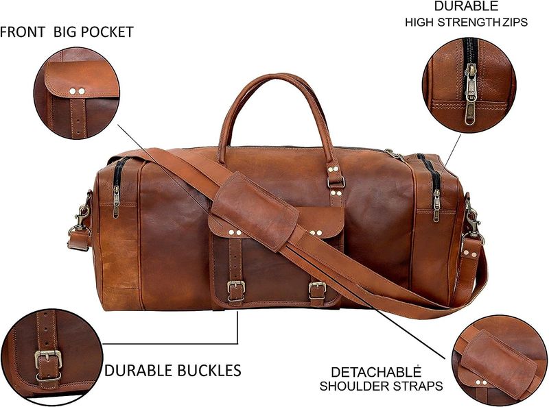 Bolsa grande de cuero para viaje, 32 pulgadas, de lona, artesanal, para viaje de fin de semana, de