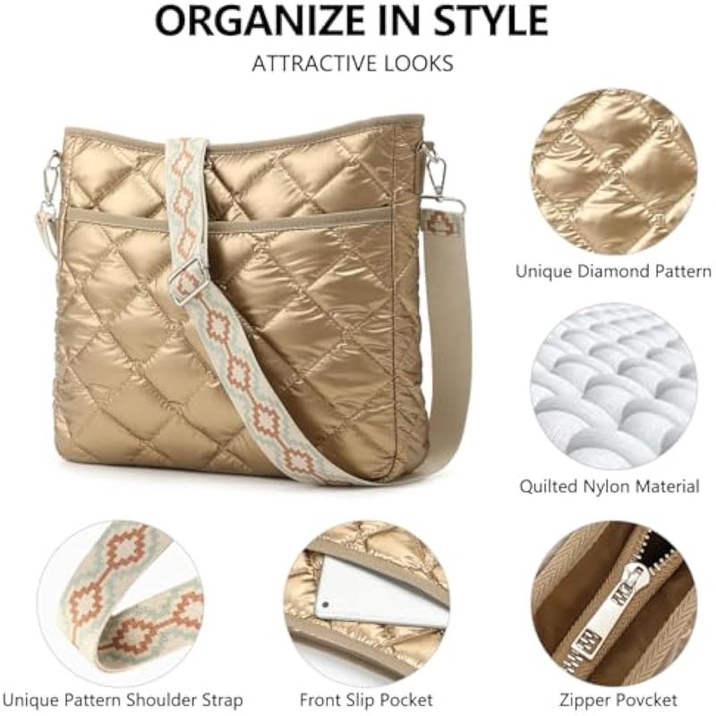 HOGARINDUMENTARIA Y ACCESORIOSBolsas cruzadas acolchadas para mujer, patrón único con correa acolchada, bolsos cruzados para