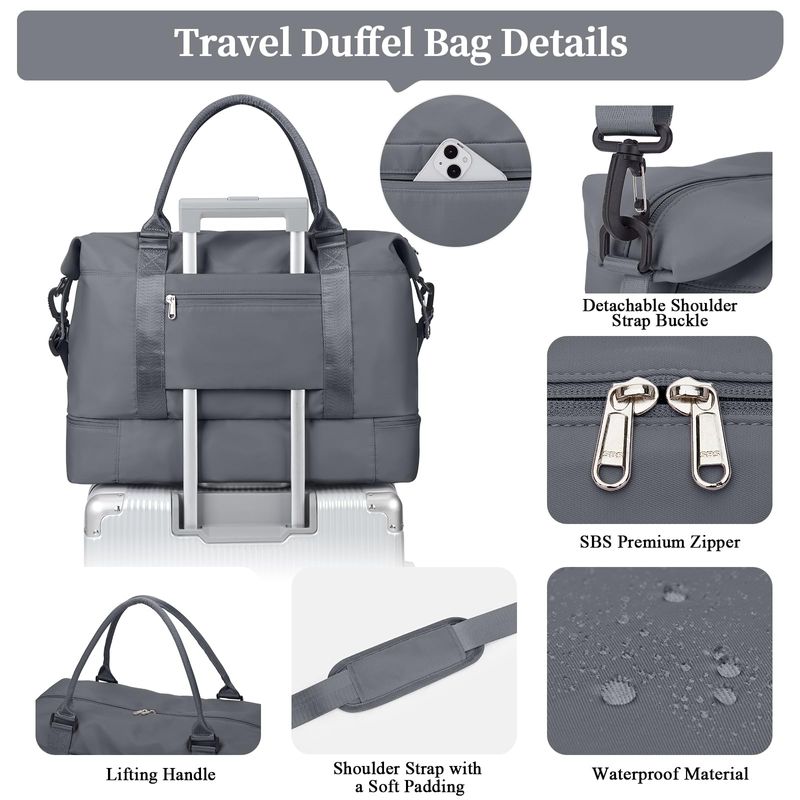 Bolsas de fin de semana para mujer, bolsa de viaje para artículos personales con compartimento para
