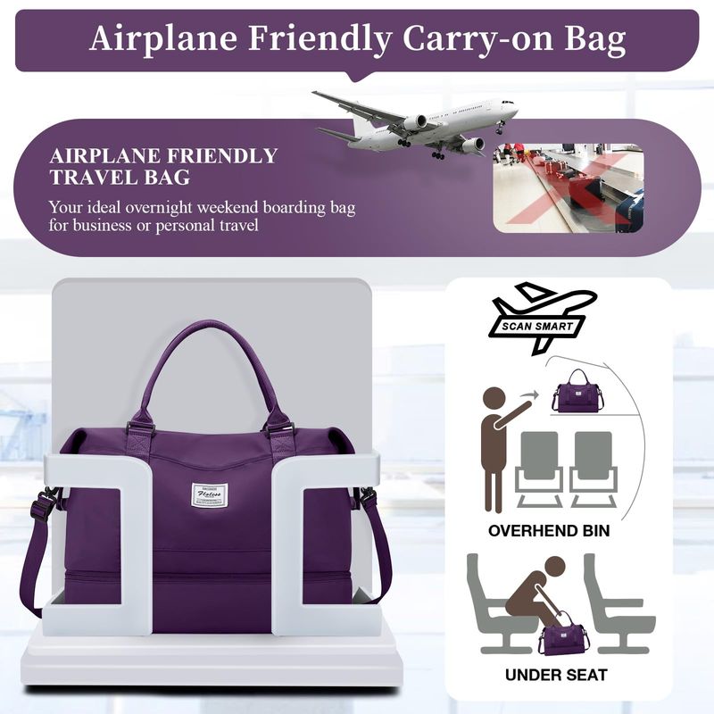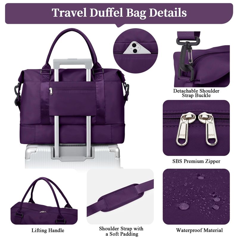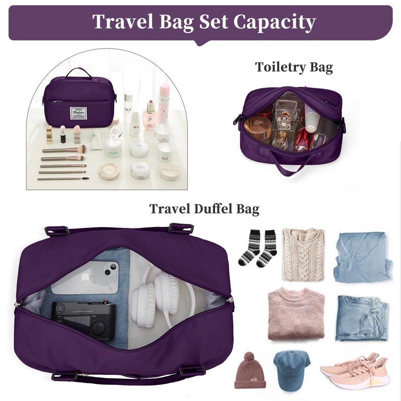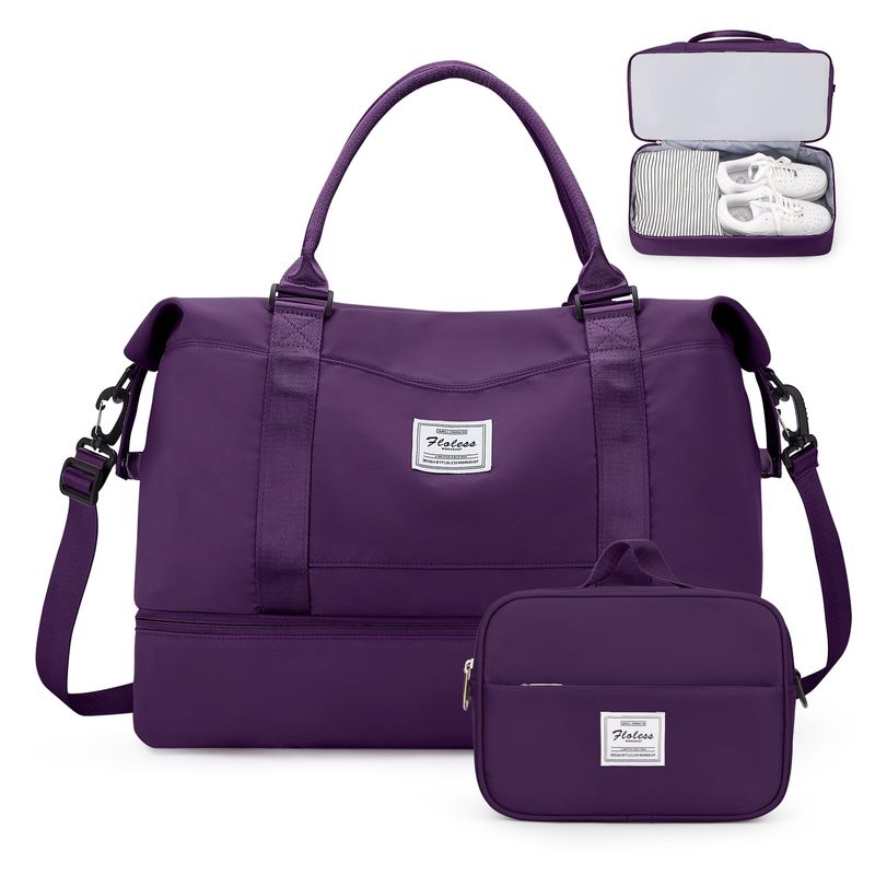 BOLSAS DE FIN DE SEMANA PARA MUJER, BOLSA DE VIAJE PARA ARTíCULOS PERSONALES CON COMPARTIMENTO PARA ZAPATOS, BOLSA DE VIAJE CON BOLSILLO PARA ROPA HúMEDA Y BOLSA DE ASEO SEPARADO, BOLSA DE GIMNASIO, PúRPURA, SET (BOLSA DE VIAJE+BOLSA DE ASEO)