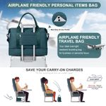 Bolsa de mano apta para avión: este tamaño de esta bolsa de fin de semana para mujer es de 18.50 x 14.1 x 8.13 pulgadas y cumple con la mayoría de los requisitos internacionales de equipaje de mano. La funda de la carretilla incorporada se desliza en el asa del equipaje de la carretilla, ahorrando esfuerzo y haciendo que sea fácil de mover. Y se puede guardar como bolsa de artículos personales en compartimentos superiores, debajo del asiento durante el vuelo.