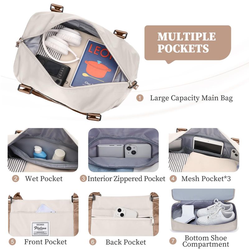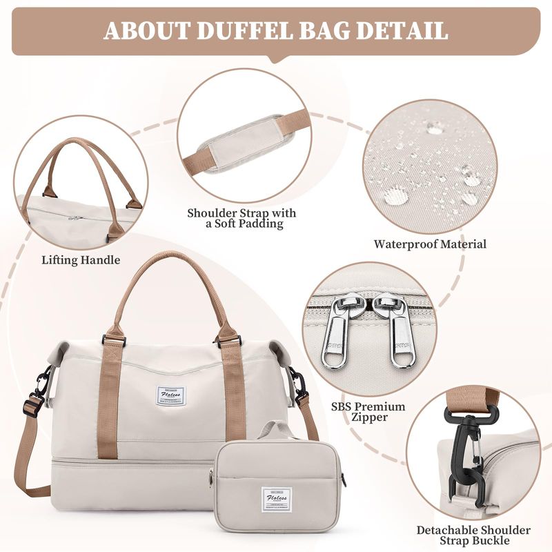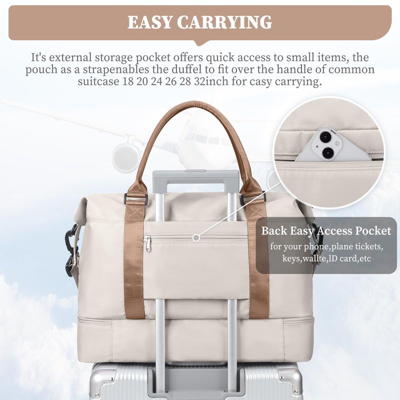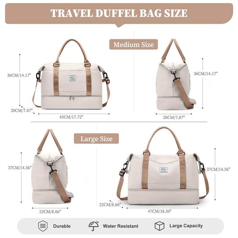 Bolsas de fin de semana para mujer, bolsa de viaje para artículos personales con compartimento para