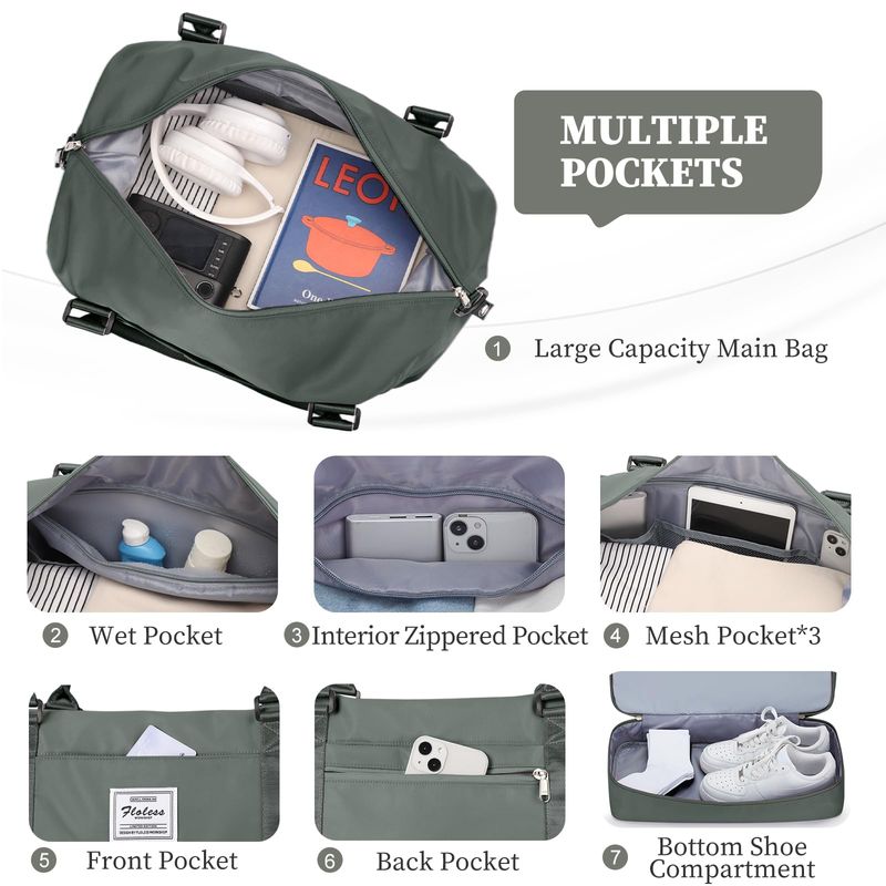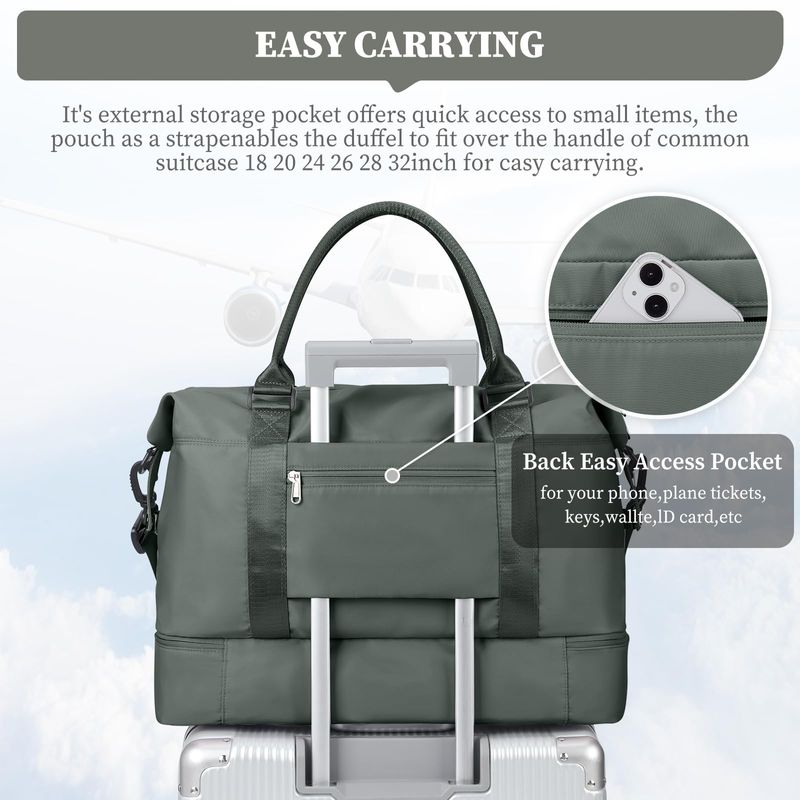 Bolsas de fin de semana para mujer, bolsa de viaje para artículos personales con compartimento para