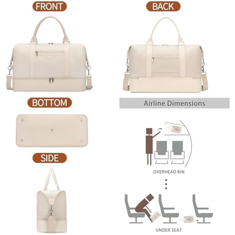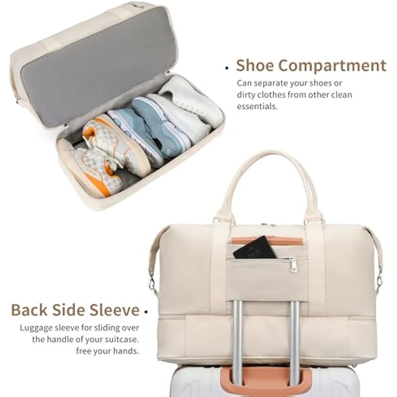 BOLSAS DE FIN DE SEMANA PARA MUJER CON COMPARTIMENTO PARA ZAPATOS, BOLSAS DE VIAJE DE GRAN CAPACIDAD, PERFECTAS PARA VIAJES/REGALO (JUEGO DE 2 PIEZAS), G-BEIGE(NUEVO), UN VIAJE DE FIN DE SEMANA