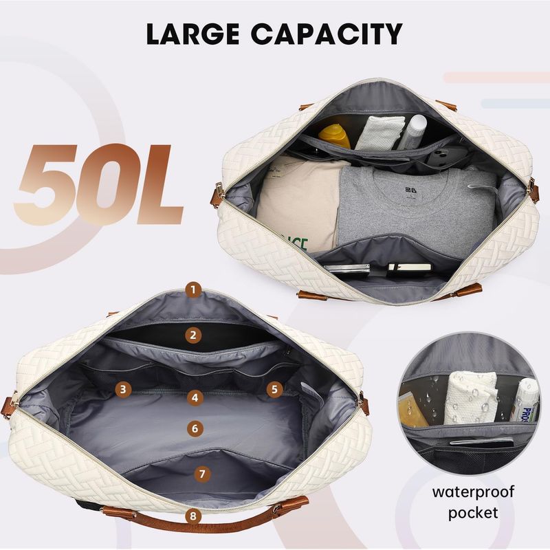 EQUIPAJEMOCHILASBolsas de lona para mujer, bolsa de viaje acolchada de 50 litros con compartimento para zapatos,
