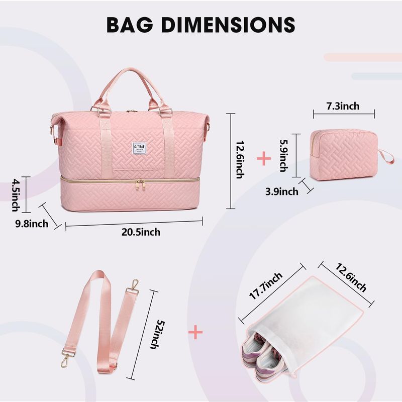 Bolsas de lona para mujer, bolsa de viaje acolchada de 50 litros con compartimento para zapatos,