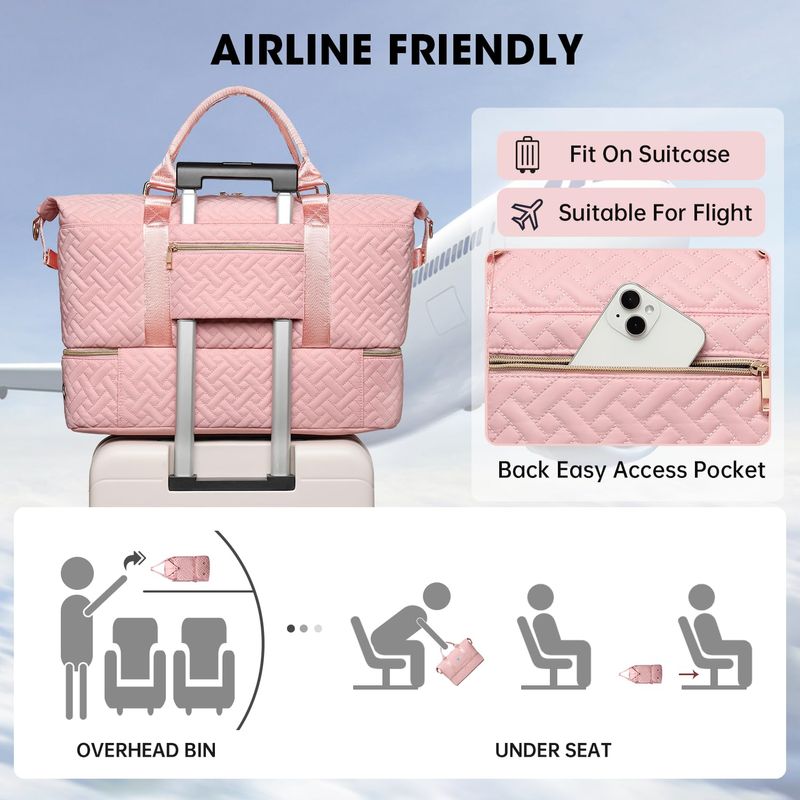 EQUIPAJEMOCHILASBolsas de lona para mujer, bolsa de viaje acolchada de 50 litros con compartimento para zapatos,