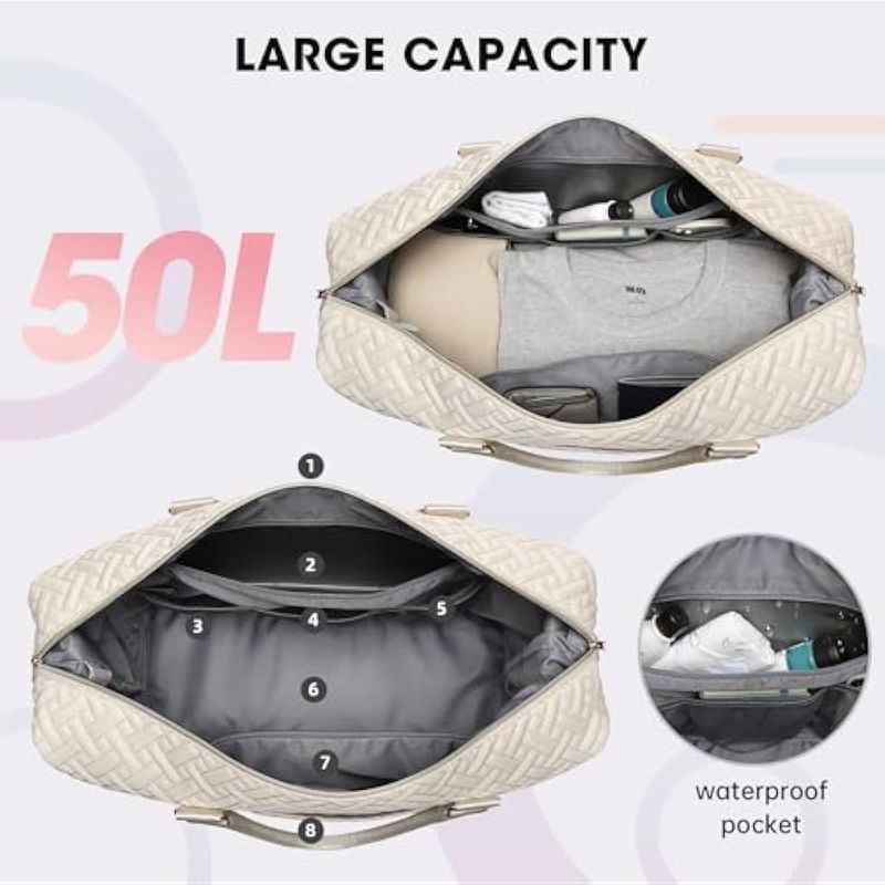 EQUIPAJEMOCHILASBolsas de lona para mujer, bolsa de viaje acolchada de 50 litros con compartimento para zapatos,