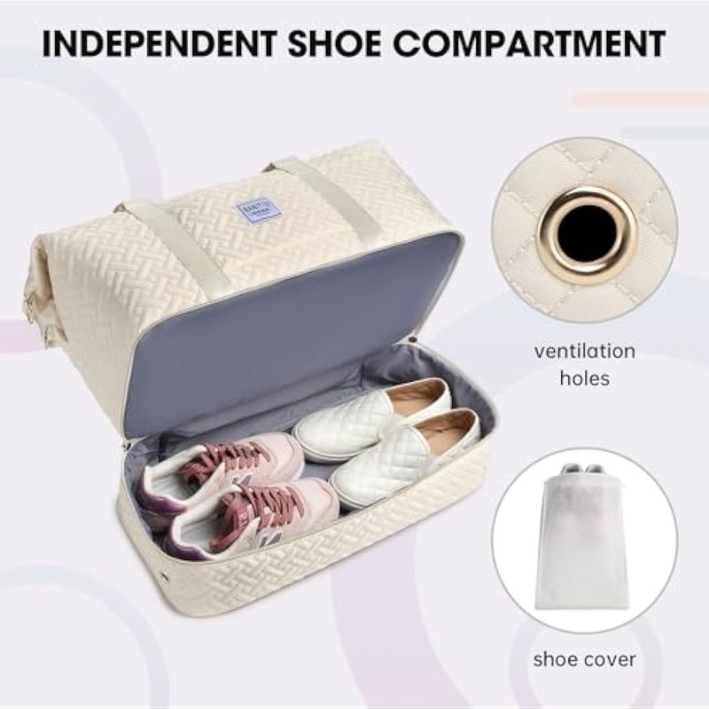 Bolsas de lona para mujer, bolsa de viaje acolchada de 50 litros con compartimento para zapatos,