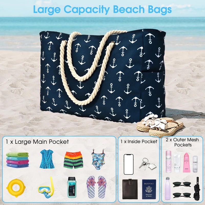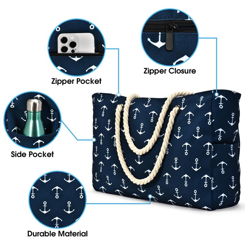 Bolsas de playa para mujer, bolsa de playa grande impermeable con cremallera, bolsas de playa,