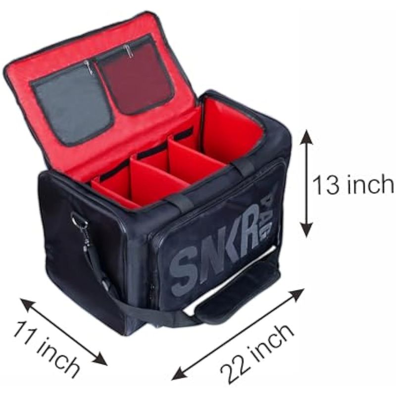 Bien protegida: nuestra bolsa de lona para tenis tiene una superficie impermeable, inserto acolchado y interior que no destiñe. Estas características protegen artículos, como zapatos y ropa, así como dispositivos electrónicos, de daños causados por líquidos, impactos y sangradodecoloración de la tela. El divisor de velcro en el medio evita eficazmente cualquier apriete o cambio no deseado de tus artículos.