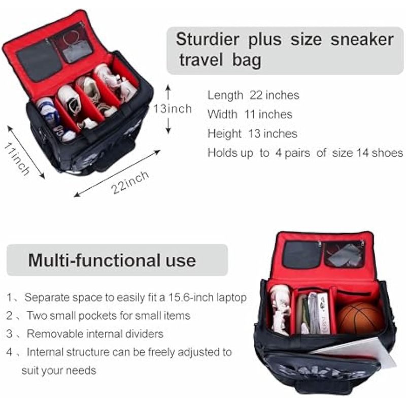 BOLSAS DE ZAPATOS PARA VIAJES, ZAPATOS DEPORTIVOS, BOLSA DE VIAJE, BOLSAS DE LONA IMPERMEABLES, PARA GIMNASIO, DEPORTES, EQUIPAJE, BOLSA PARA HOMBRES CON 3 DIVISORES AJUSTABLES PARA 4 PARES