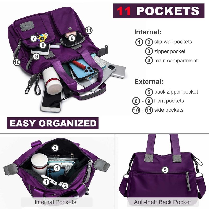 HOGARINDUMENTARIA Y ACCESORIOSBolso de mano ligero, floral, con asa superior con múltiples bolsillos de nailon para el trabajo,