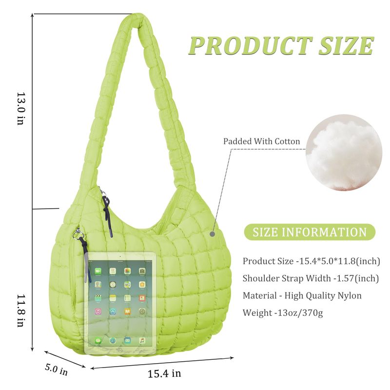 Bolso grande acolchado cruzado para mujer, ligero, acolchado, de algodón, bolsa de transporte