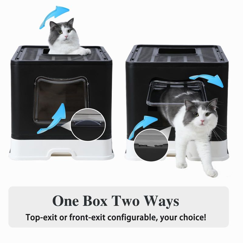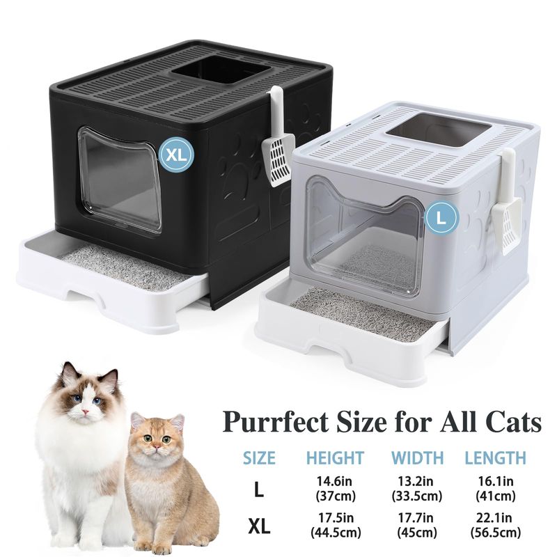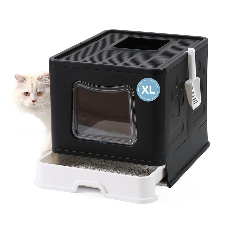 Bolux Caja de arena plegable para gatos con tapa, caja de arena extra grande con pala de arena para