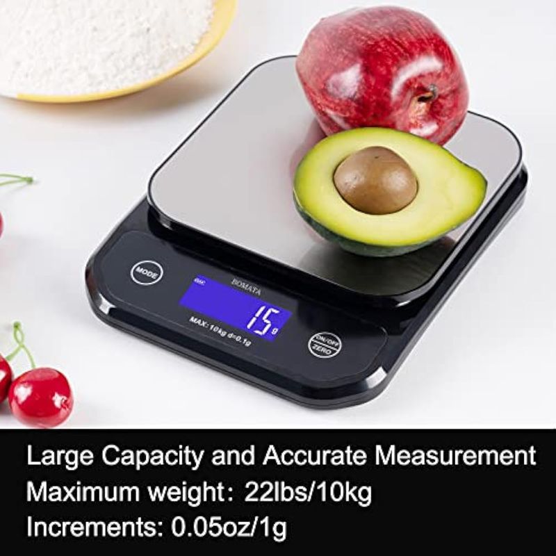 BOMATA Báscula de alimentos impermeable IPX7, 22 libras, recargable, sumergible, onzas y gramos para