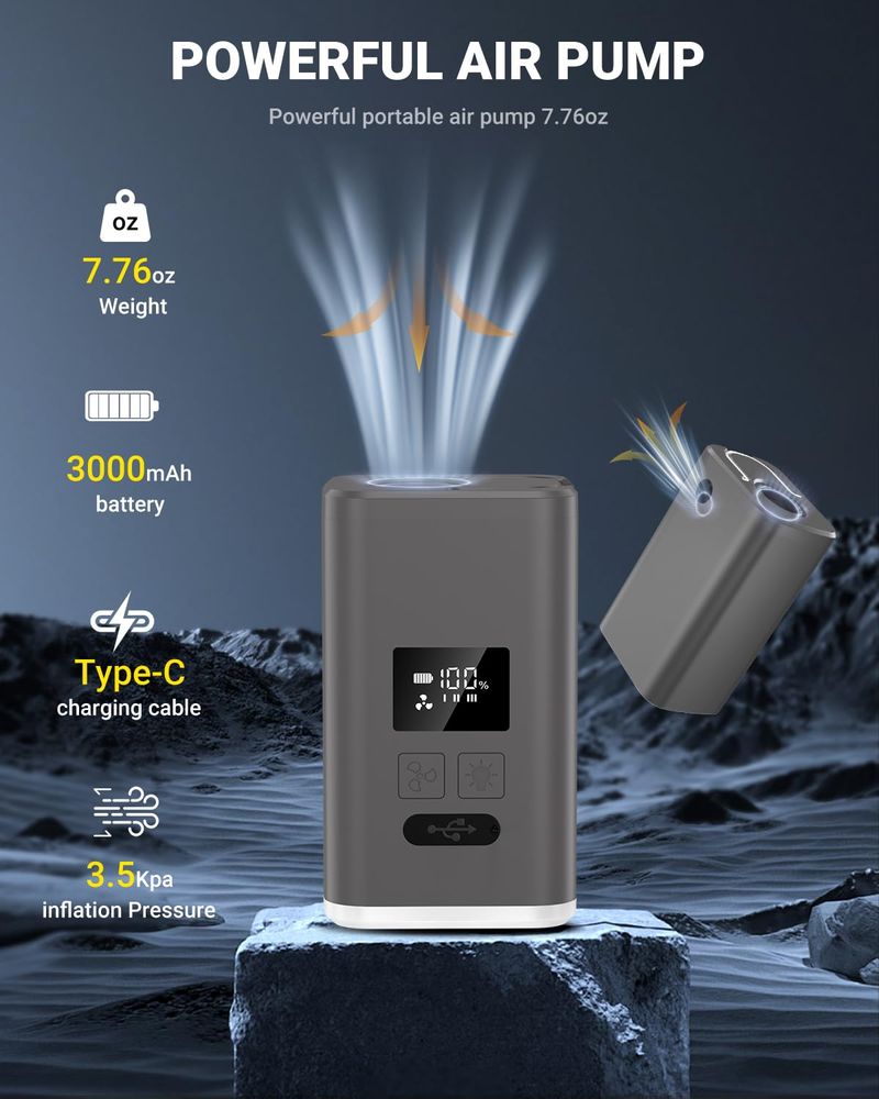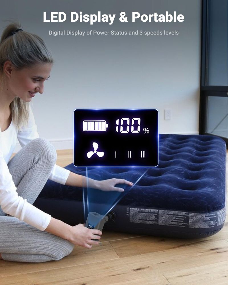 BOMBA DE AIRE PORTáTIL PARA INFLABLES, BOMBA DE COLCHóN DE AIRE ELéCTRICA CON BATERíA DE 3000 MAH, 2 VECES MáS RáPIDA/DESINFLACIóN, MINI BOMBA DE AIRE CON LUZ DE CAMPAMENTO PARA FLOTADORES DE PISCINA,