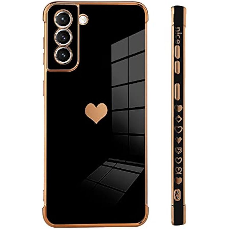 Bonoma Funda compatible con Samsung Galaxy S21 con chapado en corazón de amor, galvanizado, elegante