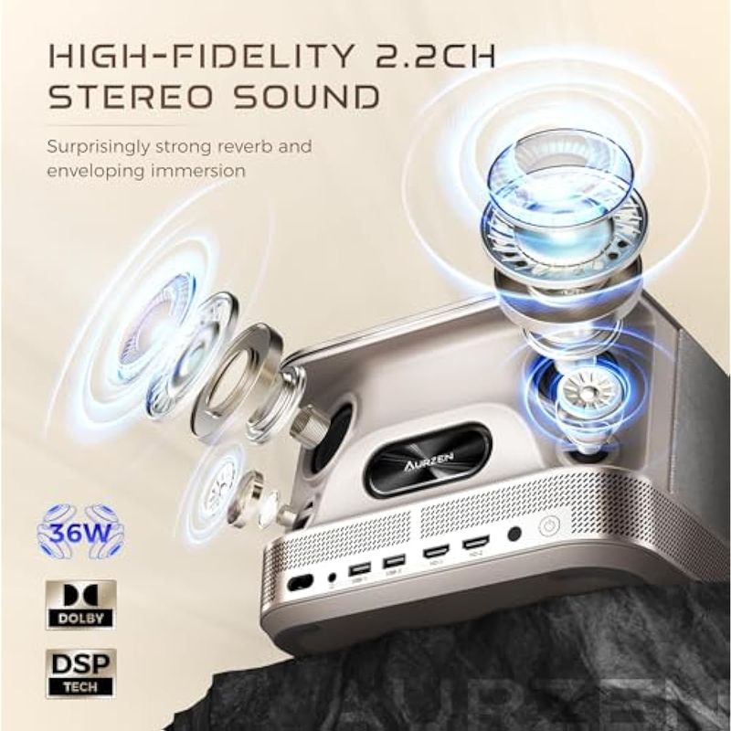 Boom 3 - Proyector inteligente 4K todo en uno con WiFi y Bluetooth, audio DoIby 3D y altavoces de 36