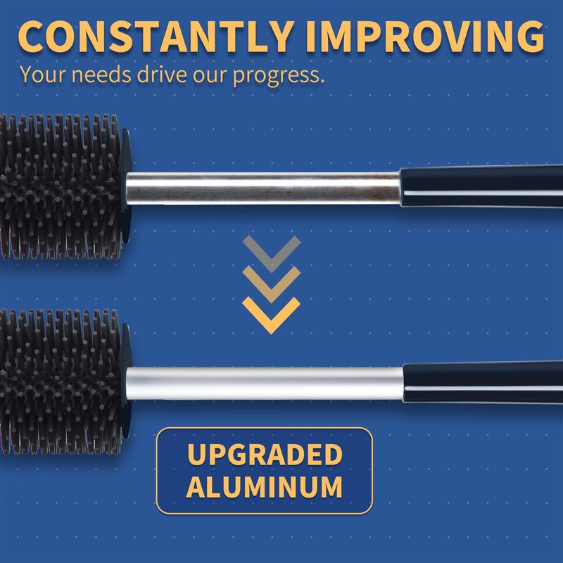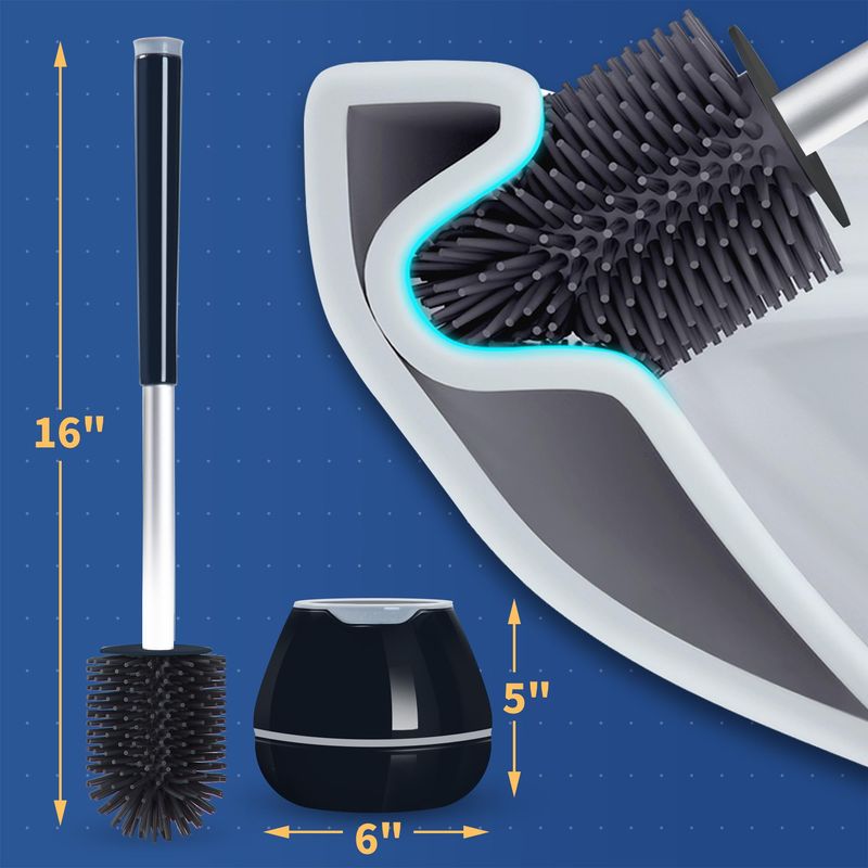 Cerdas de silicona y varilla de aluminio: las cerdas están hechas de silicona suave, que no daña el esmalte y limpia eficientemente el borde del inodoro. El material de la varilla de aluminio mejorado evita la oxidación